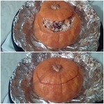 За 20 минут до конца выпечки убрать фольгу с верхней части и дать тыкве подрумянится.