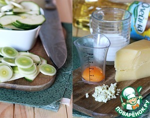 Кабачки и лук порежем кружками/полукругами, чеснок мелко порубим, достанем сливки, отделим желтки (не удивляйтесь, что у меня он один - я как обычно готовила только для себя любимой)), потрем сыр. -