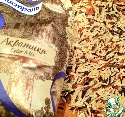 • Для салата мы будем использовать смесь Акватика Color Mix от Мистраль. Залить рис водой в соотношении 1:3 и варить на тихом огне под крышкой 35 минут.