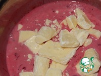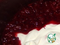 Ягоды нужно немного остудить примерно до 80 градусов, затем добавить к ним сливки, аккуратно перемешать. |