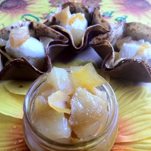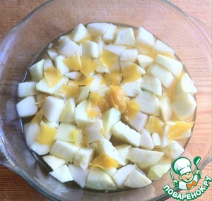 • Яблоки и грушу очищаем от кожицы, режем крупными кусочками и сбрызгиваем соком лимона. Плоды лучше брать твердые и не очень сладкие.