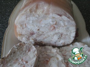 По истечении времени вынуть, оставить остывать. Затем убрать в холодильник на несколько часов (я на ночь ставила). Утром пакет разрезать, вынуть "студень", нарезать ломтиками.