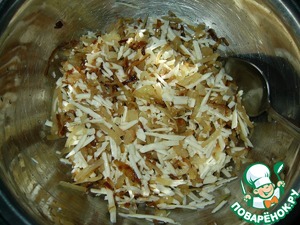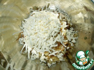 Плавленные сырки натереть на крупной тёрке и добавить к капусте с луком