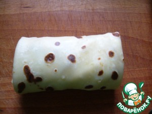 Начинку выложить на край блина