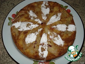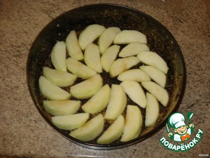 Берём поднос и переворачиваем на него кекс, т.е. яблоки, уложенные на дне, теперь будут сверху.