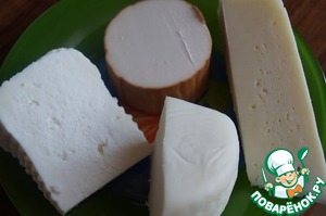 Четыре сорта сыра - Адыгейский, Сулугуни, Голландский и Копченый колбасный