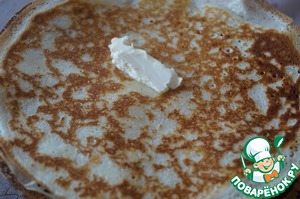 Испечь блинчики, смазывая их пока горячие, сливочным маслом.