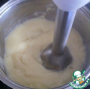 Дать слегка остыть и пюрировать блендером вместе с водой, в которой варился картофель.