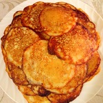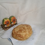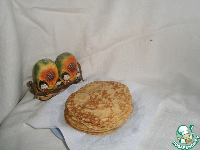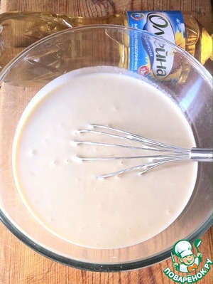Из отдохнувшего теста печём небольшие блинчики. Сковородку при необходимости смазываем кисточкой, смоченной в подсолнечном масле Олейна.