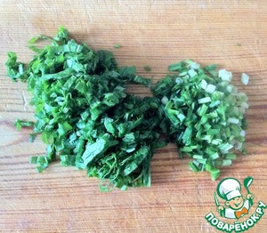 Зелёный лук мелко нарезать. Щавель нарезать тонкими ленточками.