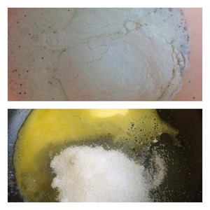 В миске или сковороде растопить сливочное масло и добавить сахар -