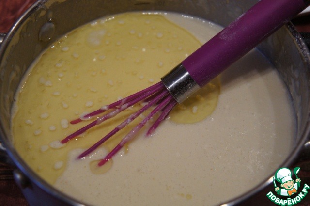 Соединить молоко, яйцо, сахар и муку. Перемешать.