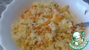 Отварить рис до готовности. Обжарить лук с морковью. Все смешать.