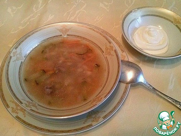 Рассольник с куриной печенью и перловкой