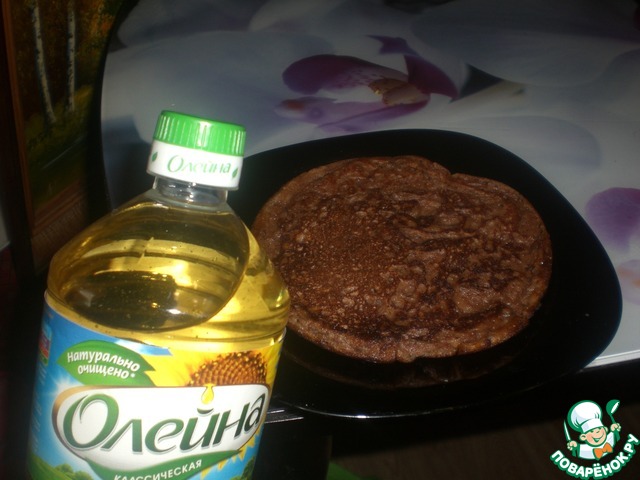 • Приготовить тесто, по консистенции как сметана, испечь из него толстые шоколадные блины