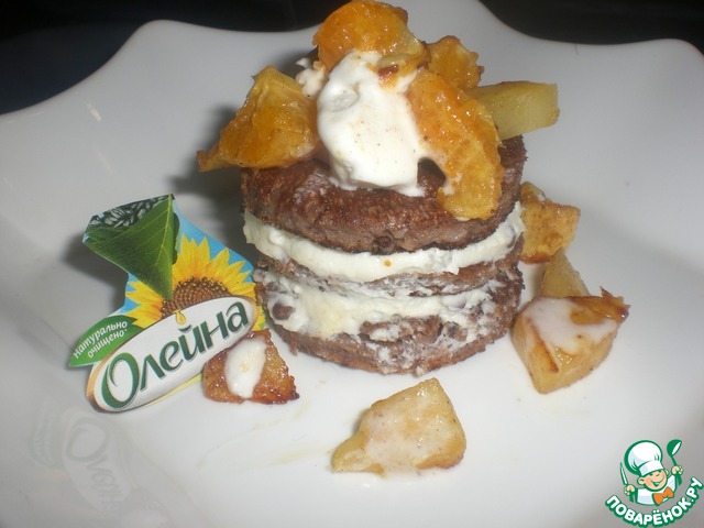 Рецепт «Блинное пирожное с мороженым и фруктами фламбе»: