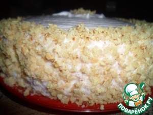 • Измельчаем обрезки с панкейков и обсыпаем края торта.