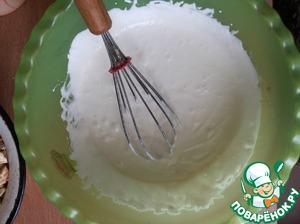 • Взбиваем сметану с сахаром (сахар по вкусу)