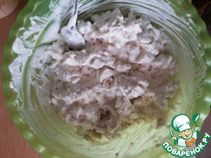 • Соединяем сметану взбитую с сахаром с нашими крекерами, тщательно перемешиваем и убираем в холодильник минут на 10