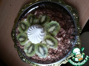 • Дальше украшаем торт по своему желанию) Я положила в серединку половинку зефира, и украсила киви, а потом еще и шоколадку потерла на терке и украсила ее бока тортика)