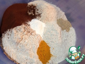 Духовку предварительно разогреваем до 180С. Подготовим сухие ингредиенты
