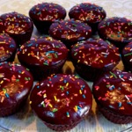 Силиконовой кисточкой намазываю глазурь и посыпаю кондитерской посыпкой. Украшаем по вкусу и по желанию!