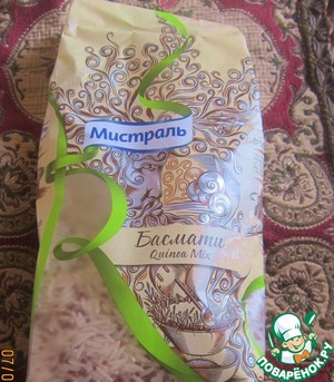 Рис тщательно промыть, затем пересыпать в кастрюлю. Влить 550 мл холодной подсоленной воды, довести до кипения и варить рис под крышкой на слабом огне 20 минут. -