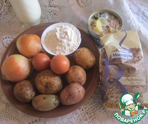 Ингредиенты для «Пирог картофельный с рисом и рыбой»: