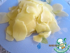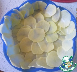 • Картофель моем, чистим и нарезаем тонкими кружочками.