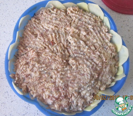 Рецепт «Пирог картофельный с рисом и рыбой»: