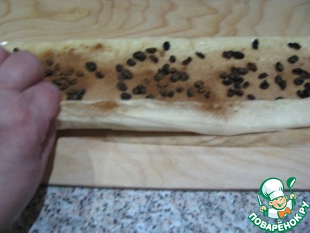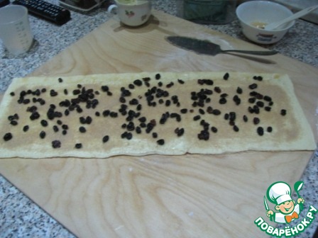 Подготовленный изюм разбрасываем сверху и присыпаем корицей
