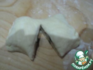 Каждый кусочек разрезаем в середине, не доходя до края 1-1,5см. получаем
