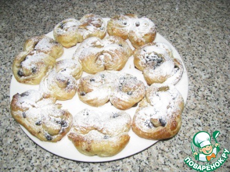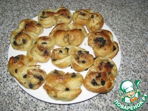Сладкие плюшки с изюмом к чаю, из готового слоеного дрожжевого теста
