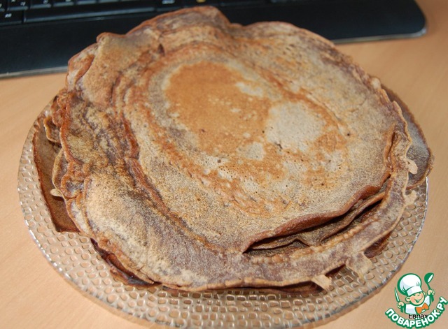Сковороду хорошо нагреть, налить немного растительного масла и добавить кусочек сливочного масла. Повернуть сковороду, чтобы масло полностью покрыло дно. Тесто перемешать, налить в сковороду один половник или чуть меньше. Тесто должно покрыть дно сковороды. Жарить не трогая блинчик 1-2 минуты, пока края не начнут легко отделяться от сковороды. Подденьте лопаткой и переверните. Жарьте с другой стороны 1-2 минуты.