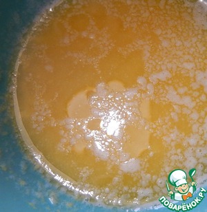 • Когда тесто готово к выпечке. Готовим масляную пропитку, сливочное масло растапливаем. В горячее масло добавляем пропущенный через пресс чеснок. Вливаем столовую ложку подсолнечного масла Олейна и добавляем горчицу. Хорошенько перемешиваем.
