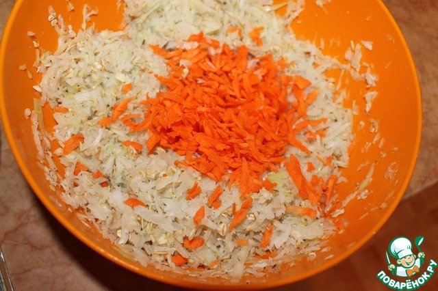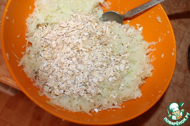 Добавляем овсяные хлопья, солим, перчим по вкусу.