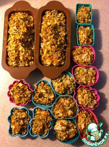 Раскладываем "тесто" по формочкам и отправляем в духовку на 30 минут 180-200 градусов.
