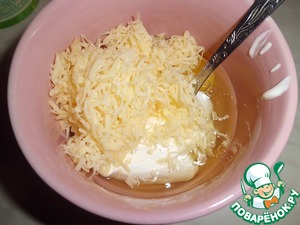 Яйца взбиваем вилкой со сметаной и 2 ст. л. натертого сыра.