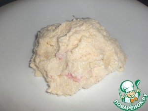 Крабовые палочки (я беру с добавлением крабового мяса), сыр и майонез пробить блендером до кремообразного состояния
