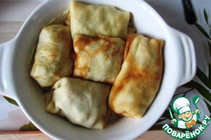 Сворачиваем конвертом и укладываем в смазанную маслом форму для запекания.