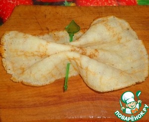 Сворачиваем блины как на фото и фиксируем палочками для канапе.