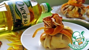 Постепенно поднимаем края блинчика и перевязываем апельсиновой ленточкой! Наш "Подарок" готов!