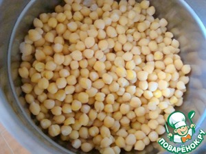 Нут замочить на 12 часов в 4 стаканах воды комнатной температуры. Слить воду, долить свежей воды (также 4 стакана), довести до кипения и на маленьком огне варить 1,5 часа. Слить воду и дать нуту остыть.