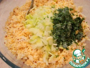 Добавить лук-шалот, петрушку. Посолить и поперчить по вкусу.