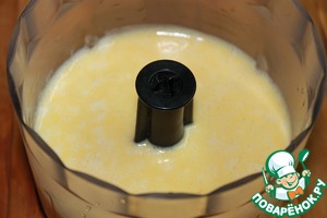 Половину тыквы выложить в блендер и пробить до пюреобразного состояния. Добавить яйца, сливки, оливковое масло, соль по вкусу, ещё раз тщательно перемешать блендером.