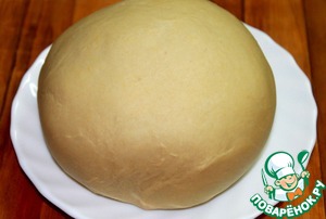 Частями всыпать муку. Замесить крутое тесто. Накрыть салфеткой и оставить отдыхать 30 минут при комнатной температуре.