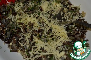 Соединить лук, потертый на мелкой терке сыр, рис с зеленью.