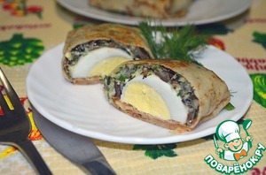 Рецепт «Блины, фаршированные рисом и яйцом»: