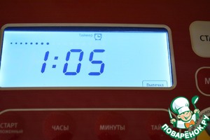Выбираем режим "Выпечка", выставляем время - 1 ч. 05 мин. По окончании программы оставляем кекс в режиме "Подогрев" на 20 мин.