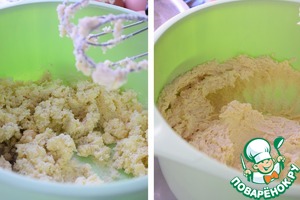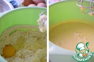 По одному добавить в масляную смесь все яйца каждый раз чуть-чуть взбивая миксером на самых малых оборотах.